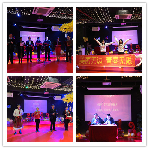 下午,全体员工参加了会务组精心安排的“金猪贺岁,青春美德”文艺汇演。此次汇演,由美德新引进的几位90后俊男靓女组织,这也是美德第一次给出了一个全员展示才艺的舞台。于是,一场别开生面的联欢会以开香槟、切蛋糕开始,逐渐揭开了她的面纱:开场节目是市场部的《三句半》,惟妙惟肖的表演笑翻全场,青春美少女团的舞蹈热辣亮眼、资深中年团的诗歌朗诵带领我们进入沉静、深思的高雅视听享受,汤总的一曲《掌声响起来》把晚会推向高潮,大家情不自禁地跟着唱起来,接下来还有相声、大合唱……原来美德竟是如此人才济济,卧虎藏龙,不但工作做得好,才艺也了得。节目间隙,穿插全员游戏及抽奖,奖品丰富,人人皆有奖,个个笑开颜。